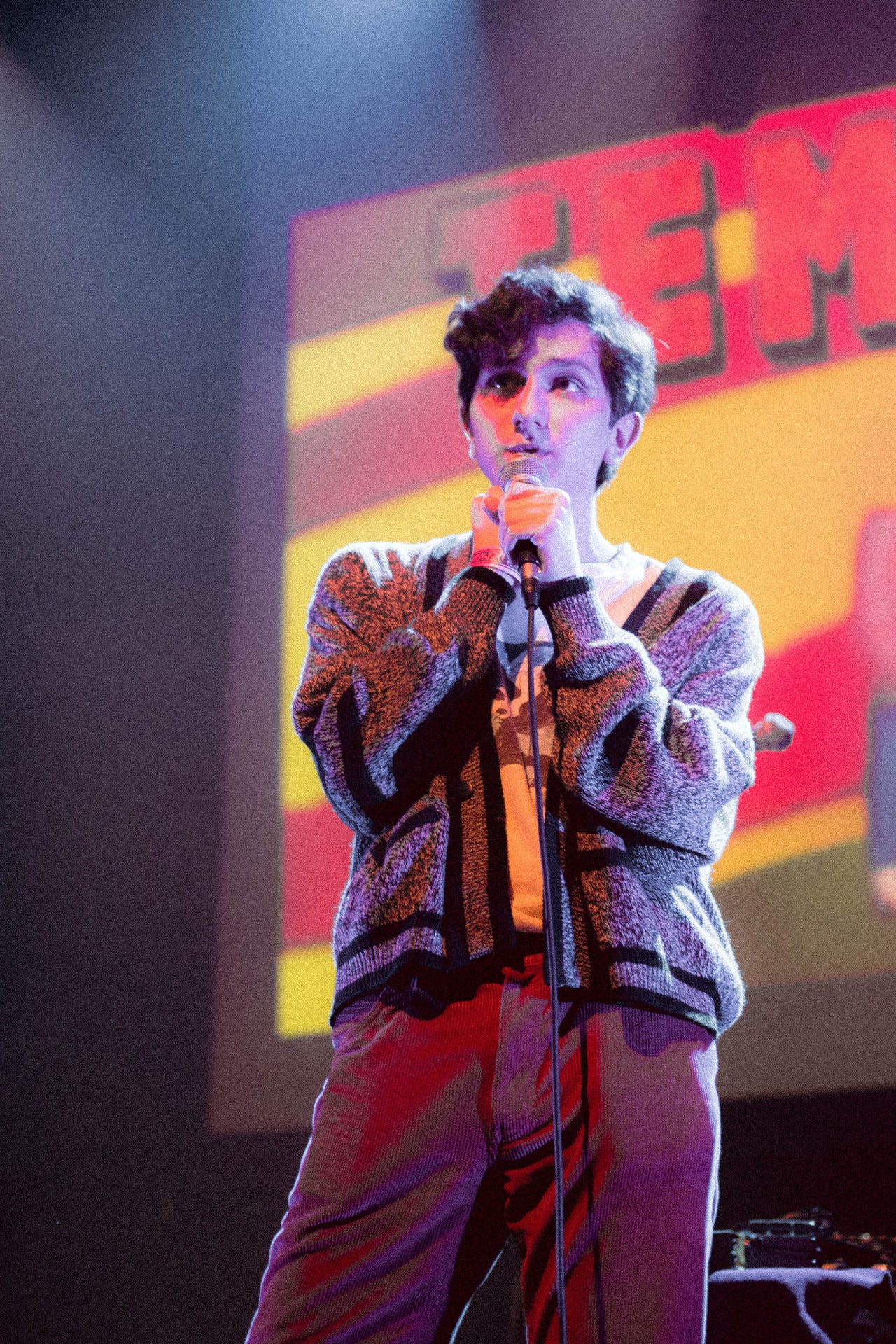 My day is going pretty good, I just played that Young Love show last night and it was really fun. The crowd really liked me I think and they all had good energy. It was really nice. I stole a bunch of lollipops from this box of candy in the green room area so that’s gonna be pretty cool for the flight back home hahaha.